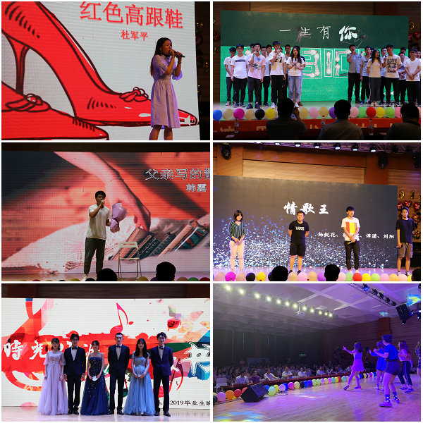 晚会在热情奔放的舞蹈《Yes or Yes》中拉开帷幕,徐祺涵小朋友为毕业生们带来钢琴独奏,送上祝福;郭思尧、孔令翯带来吉他弹唱《的青春》,用朴实的民谣歌颂友情;赵建伟和朱泽远带来的《莉莉安》和1513203班全体成员带来的合唱《同桌的你》,带我们再次回到那舍不得放不下的青春岁月。王星媛、冯艺纯、刘芳菲、刘旭四位毕业生倾情演绎《歌曲串烧》,在跳跃的音符中唱响未来;在这个特殊的日子里,可爱的教师子女赵梦溪、苏梓涵、王子萌、杨沛时为全体毕业生带来合唱《送别》,用歌声送别即将远行的学子;毕业时节,离别时刻,杨明轩、朱文绚带来的一首《再见》让我们彼此珍重;《当》是1512104班对于潇洒青春的完美诠释。小品《回家的诱惑》引得现场爆笑连连,《红色高跟鞋》、《一生有你》、《父亲写的散文诗》、《情歌王》、《毕业歌》接连唱响,曲调悠扬,唱响了青春的旋律。来自哈哈曲艺社的赵浩男、邸荣昊带来相声《我的大学生活》,深情回忆了从入学到毕业的四年大学生活,笑点不断,耐人寻味。